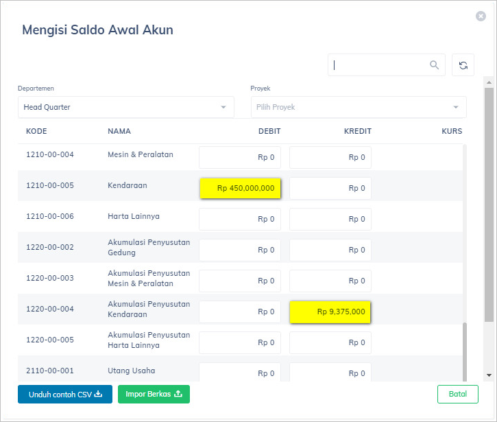 - Kedua input data harta tetap berdasarkan referensi dari penginputan saldo awal akun diatas.