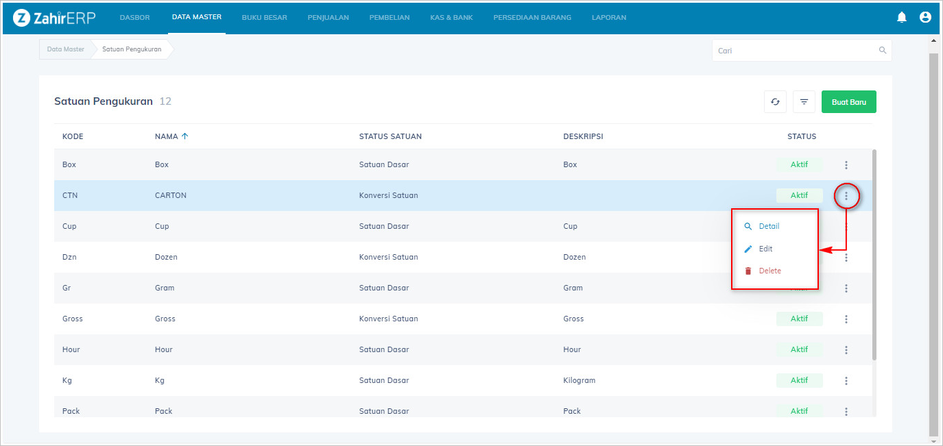 Data satuan pengukuran yang sudah digunakan masih bisa di edit dengan catatan belum pernah dipakai dalam transaksi, karena jika tetap di edit akan merubah histori transaksi sebelumnya.
