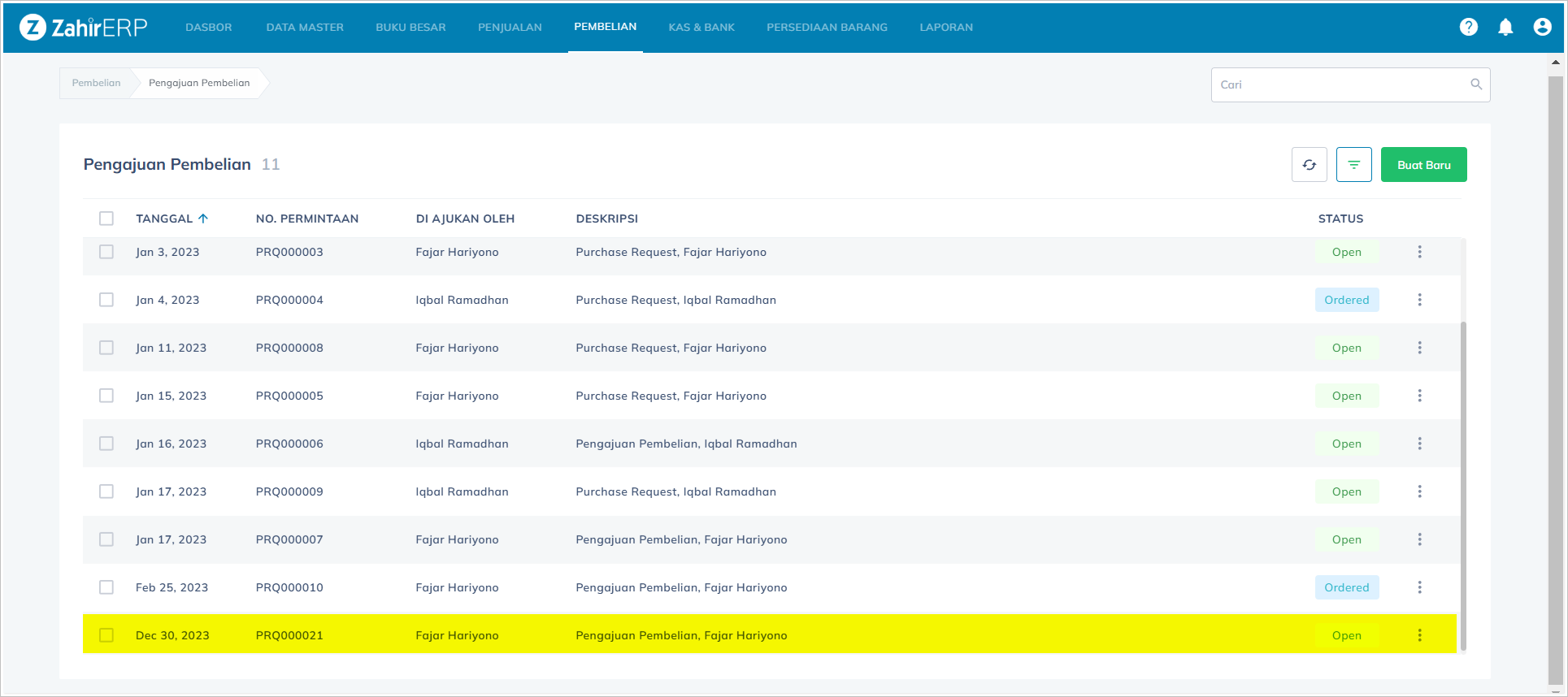 1. Fungsi Permintaan Pembelian / Purchase Request