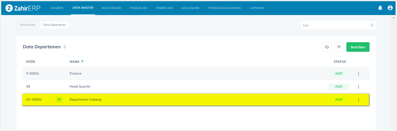 Data departemen yang sudah digunakan dalam transaksi tidak akan bisa dihapus